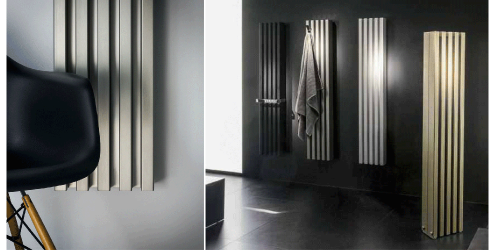 - B51 x H180 cm- 8 Elemente- für Warmwasserbetrieb - inkl. Standard-Ventilgruppe - Farbe: Aluminium eloxiert titangrau matt - inkl. Handtuchstange verchromt