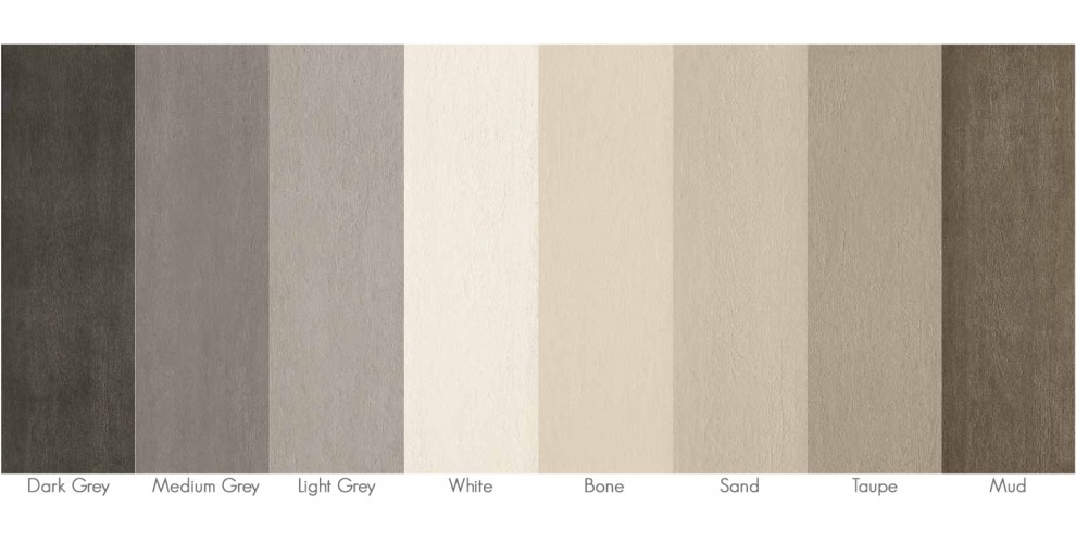 White, Medium Grey, Dark Grey, Mud, Bone, Sand, Taupe
